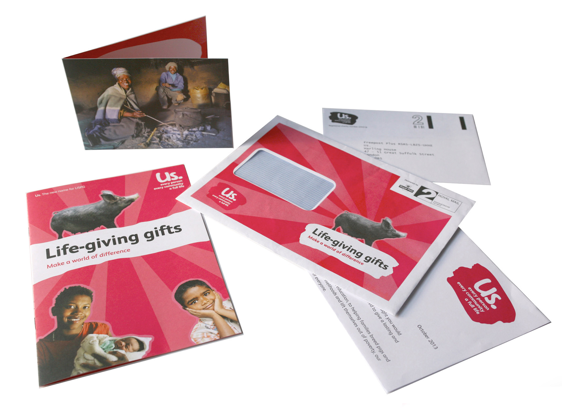 Design of ‘Life Giving Gifts’ fundraising campaign for United Society, an international development charity, now known as USPG. The vibrant design, breaks away from tradition and seeks to attract and retain new supporters to fund the charities work. A5 booklet, gift card, gift vouchers, direct mail, collection box and promotional digital assets.